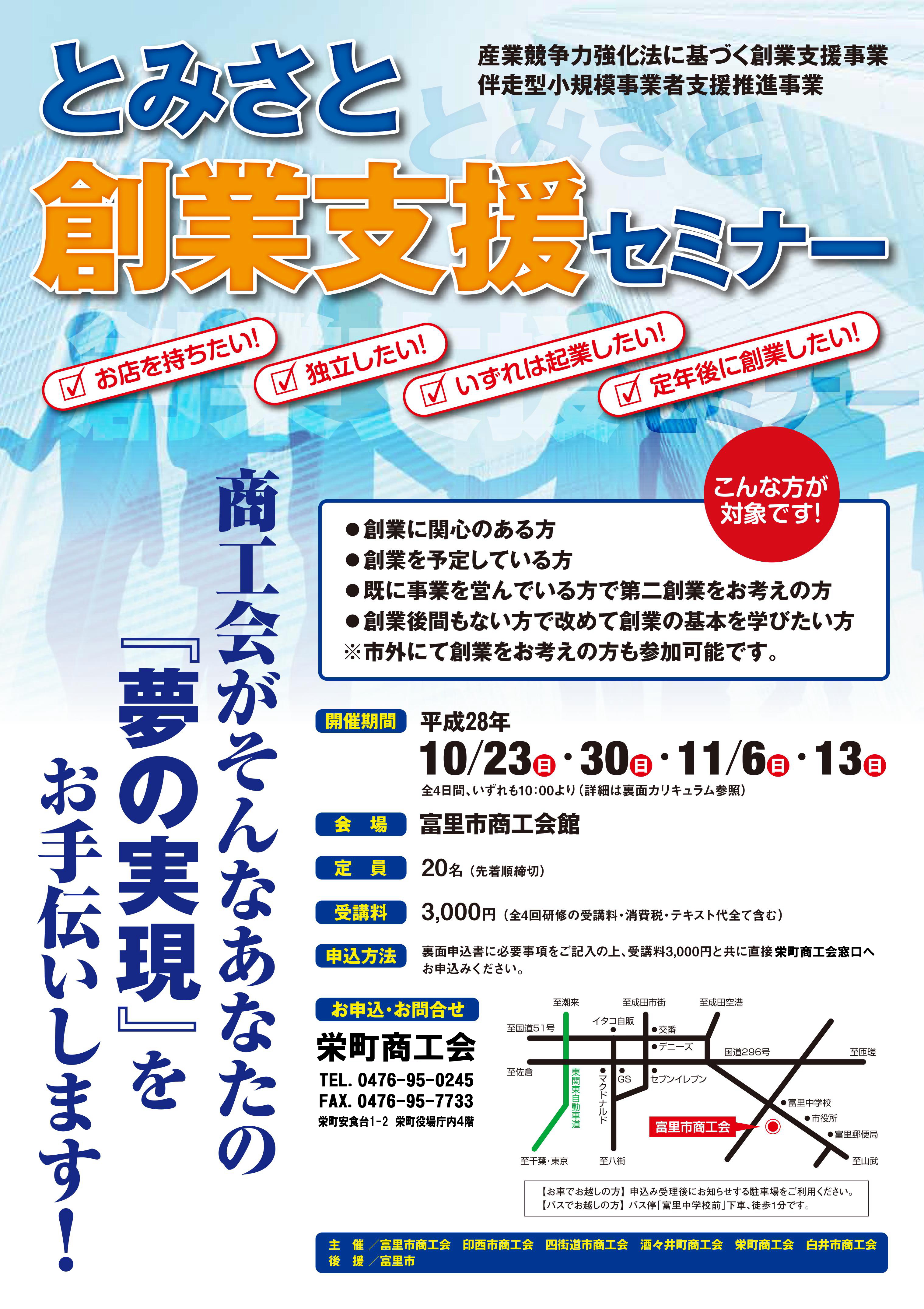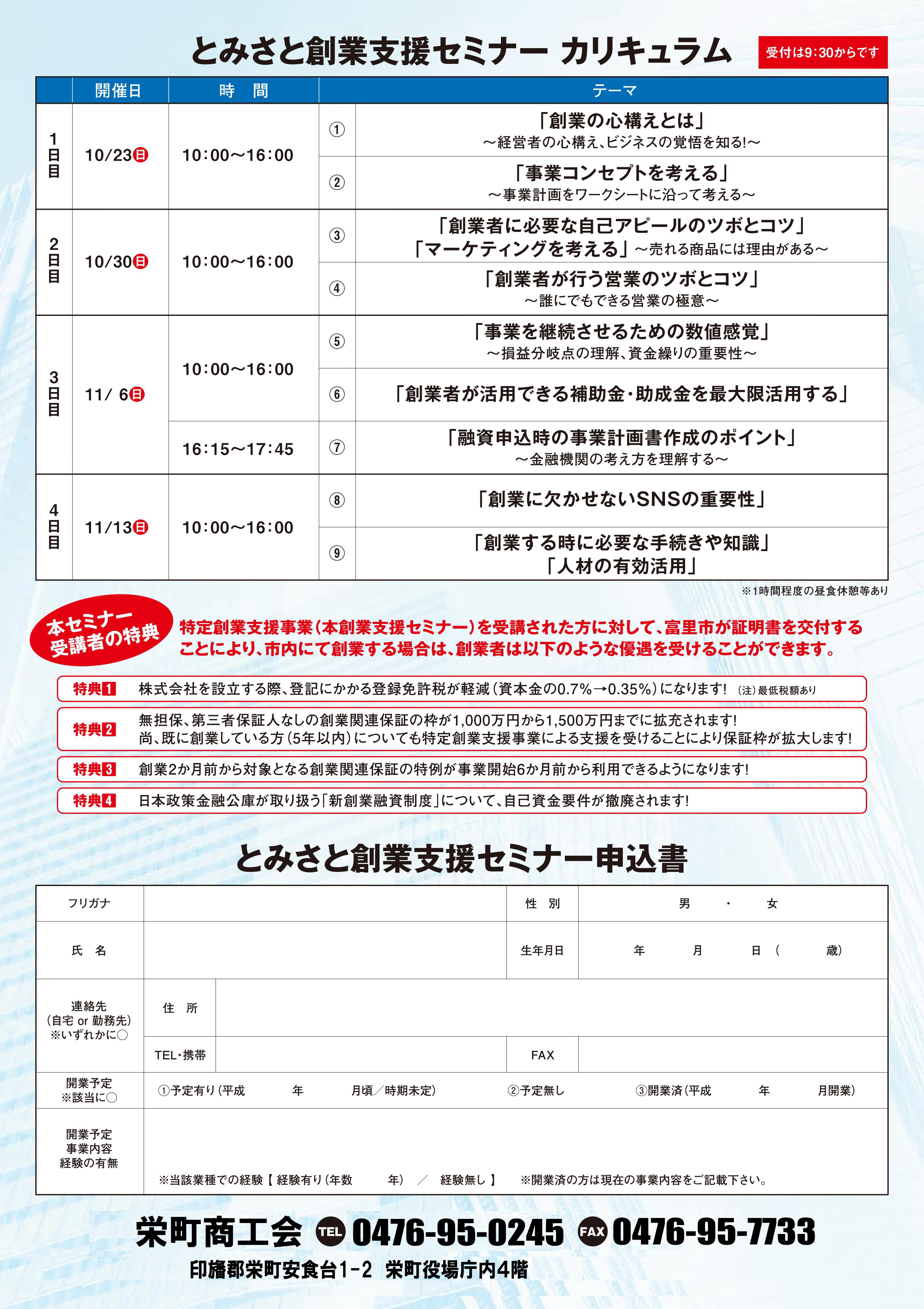 お申し込みは、以下の案内をご覧頂き、受講料3,000円と共に申込書を記載の上、直接栄町商工会窓口へお申込下さい。※セミナー会場は富里市商工会となります。