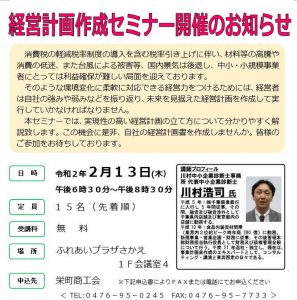本セミナーでは、実現性の高い経営計画の立て方について分かりやすく解説致します。この機会に是非、自社の経営計画書を作成しませんか。皆様のご参加をお待ちしております。