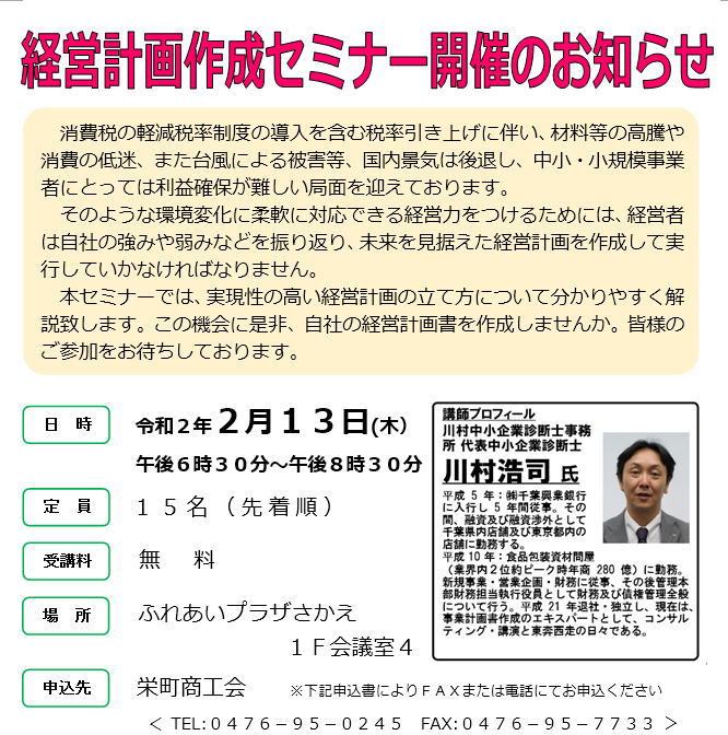 〇申込み先 栄町商工会 TEL 95-0245 FAX 95-7733