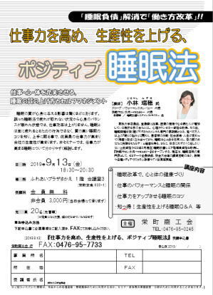 〇テーマ 「仕事力を高め、生産性を上げる、ポジティブ睡眠法」